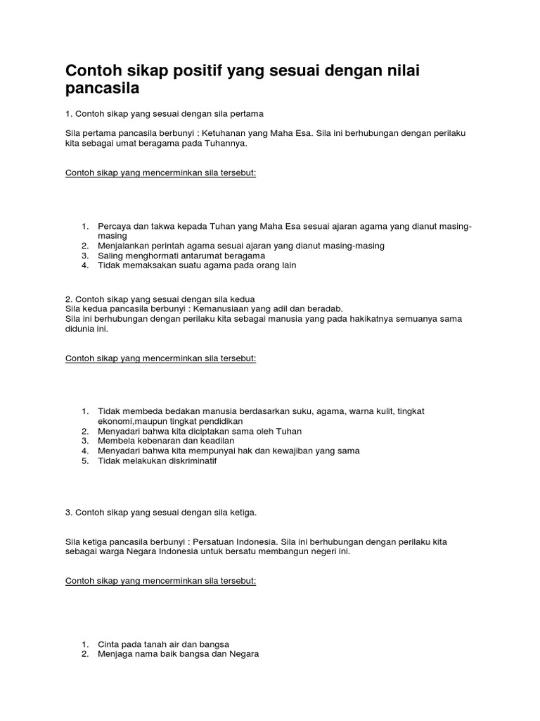 Aug 24 2014 Inilah Contoh Sikap berdasarkan sila-sila di Pancasila Ditulis Oleh life is te way pada Minggu 24 Agustus 2014 NawirFikri Halo Semuanya kali ini saya berbagi pengetahuan tentang maksud dan contohnya sikap berdasarkan silasila di Pancasila. Selalu tertib dalam menjalankan ibadah. Mar 24 2021 Sikap dan perilaku yang sesuai dengan nilai pancasila sila ke-3 antara lain.