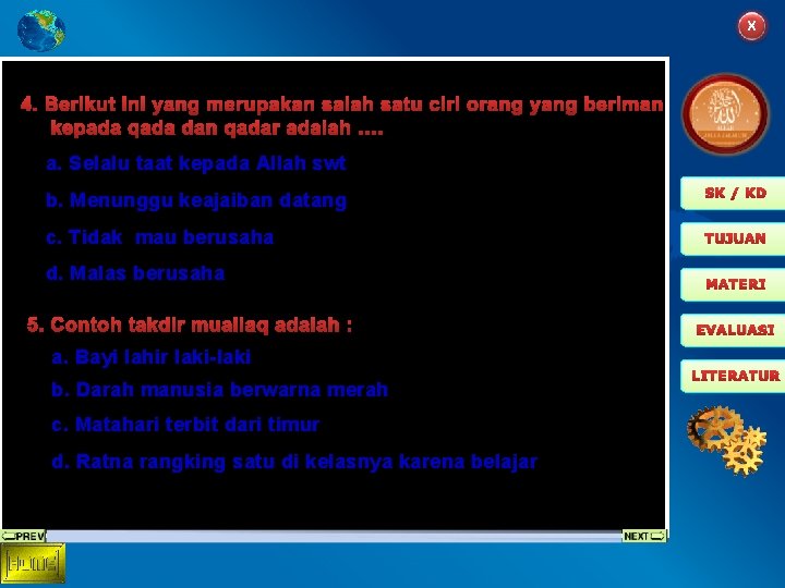 Contoh takdir mubram di antaranya jenis kelamin manusia ajal panjangpendek usia api memiliki sifat panas bumi berbentuk bulat gaya gravitasi kejadian kiamat dan sebagainya.