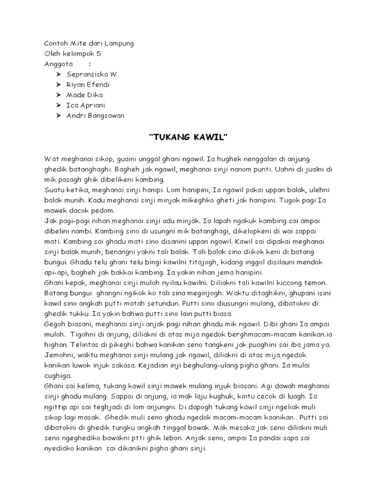Sebutkan 2 contoh judul wawaghahan legenda lampung. Mari kita simak 11 Lirik Lagu Daerah Lampung. Cerita prosa rakyat yang dianggap benar-benar terjadi. Legenda Asal Mula Nama Kota Bandung.