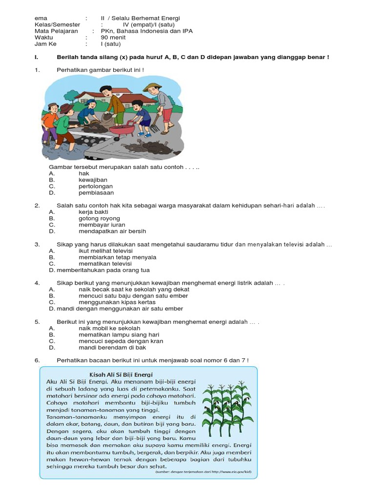 Sebagai warga sekolah yang baik siswa wajib menunjukkan kepedulian atas penggunaan energi di sekolah. Beni pergi bermain pukul 1400 dan kembali kerumah pukul 1600. Agar kehidupan menjadi selaras harmonis dan sejahtera 12.